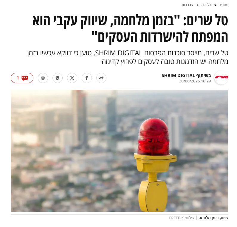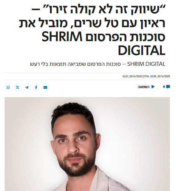 🔒 המידע שתזין בטופס יישמר במאגר של SHRIM DIGITAL וישמש למענה לפנייתך בלבד, בהתאם למדיניות הפרטיות.
